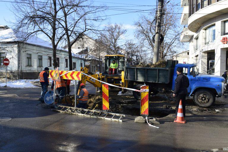 Apeductul din str. Sfatul Țării va fi renovat în timp record, iar craterul din asfalt va fi reamenajat!